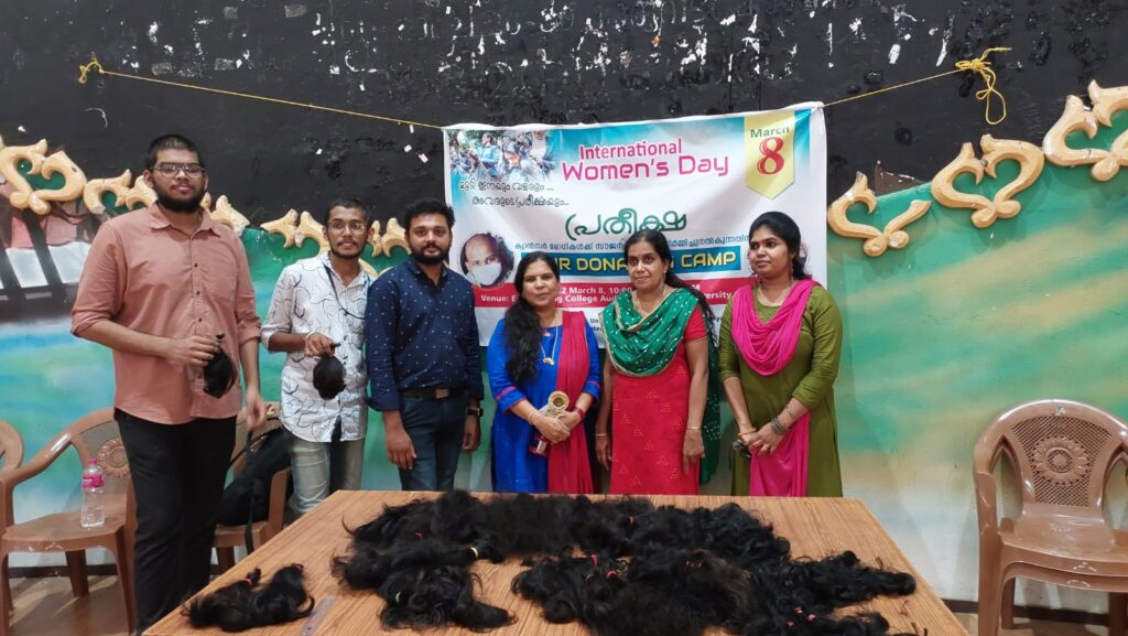 യൂണിവേഴ്‌സിറ്റി കോളേജ് ഓഫ് എഞ്ചിനീയറിംഗ് എന്‍ എസ് എസ് യൂണിറ്റും തൃശൂര്‍ ഹെയര്‍ ബാങ്കുമായി സഹകരിച്ച് കാന്‍സര്‍ രോഗികളുടെ വിഗ് നിര്‍മാണത്തിനായി തലമുടി ദാനം ചെയ്തു. അമ്പതോളം പേര്‍ അന്താരാഷ്ട്ര വിമന്‍സ് ഡേയില്‍ നടന്ന ‘പ്രതീക്ഷ’ എന്ന ഏകദിന ക്യാമ്പില്‍ വെച്ചാണ് തലമുടി ദാനം ചെയ്തത്. അതില്‍ രണ്ടുപേര്‍ ആണുങ്ങളാണ്.