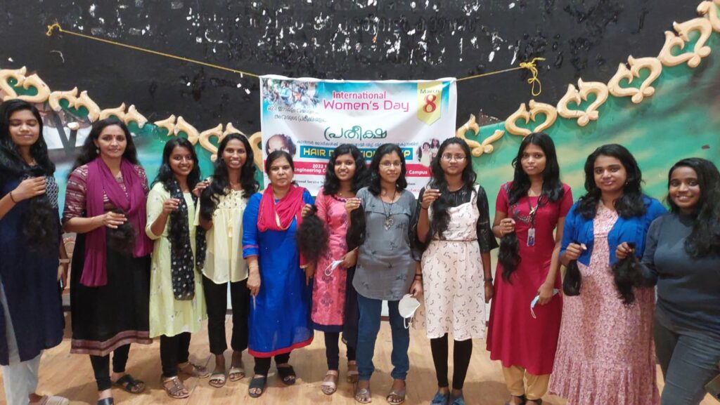 യൂണിവേഴ്‌സിറ്റി കോളേജ് ഓഫ് എഞ്ചിനീയറിംഗ് എന്‍ എസ് എസ് യൂണിറ്റും തൃശൂര്‍ ഹെയര്‍ ബാങ്കുമായി സഹകരിച്ച് കാന്‍സര്‍ രോഗികളുടെ വിഗ് നിര്‍മാണത്തിനായി തലമുടി ദാനം ചെയ്തു. അമ്പതോളം പേര്‍ അന്താരാഷ്ട്ര വിമന്‍സ് ഡേയില്‍ നടന്ന ‘പ്രതീക്ഷ’ എന്ന ഏകദിന ക്യാമ്പില്‍ വെച്ചാണ് തലമുടി ദാനം ചെയ്തത്. അതില്‍ രണ്ടുപേര്‍ ആണുങ്ങളാണ്.