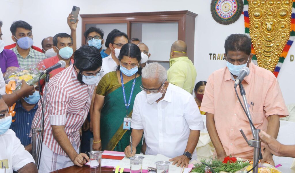 തിങ്കളാഴ്ച രാവിലെ 10.15ന് കോണ്ഫെറന്സ് ഹാളില് നടന്ന ചടങ്ങില് വച്ച് അഡ്വ.കെ.അനന്തഗോപന് പ്രസിഡന്റായി സത്യപ്രതിജ്ഞ ചെയ്ത് അധികാരമേറ്റു. തുടര്ന്ന് ബോര്ഡ് അംഗമായി അഡ്വ.മനോജ് ചരളേലും സത്യപ്രതിജ്ഞ ചെയ്ത് അധികാരമേറ്റു.