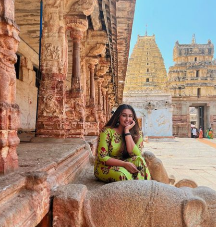 “വർഷത്തിൽ എപ്പോഴും എനിക്ക് സന്ദര്ശിക്കാന് ഇഷ്ടമുള്ള സ്ഥലമാണ് ഹംപി, നൂറ് തവണ കണ്ടുകഴിഞ്ഞാലും, തീർച്ചയായും ആദ്യമായി കണ്ട ദിനത്തിന്റെ അത്ര തന്നെ ആവേശമാണ്. സ്മാരകങ്ങൾക്കും മ്യൂസിയങ്ങൾക്കും അപ്പുറത്തേക്കുള്ള ഒരു യാത്രക്ക് ഇക്കുറി എനിക്ക് അവസരം ലഭിച്ചു. അതിരാവിലെ നടക്കാന് ഇറങ്ങിയപ്പോഴുള്ള ചിത്രമാണിത്, പിന്നിൽ ഇവോള്വ് ബ്ലാക്ക് റിസോര്ട്ട്സിന്റെ ഗംഭീരമായ കമലാപൂർ കൊട്ടാരവും കാണാം.തലേന്ന് രാത്രി മഴ പെയ്തിരുന്നു (ഹംപിയിലെ ഈ വർഷത്തെ ആദ്യത്തെ മൺസൂൺ മഴ) ഇവിടെ ഞാൻ എല്ലാം” ഹംപിയില് നിന്നുള്ള പ്രഭാതത്തില് എടുത്ത ചിത്രങ്ങള്ക്കൊപ്പം ഇന്സ്റ്റഗ്രാമില് കവിത കുറിച്ചതിങ്ങനെയാണ്.