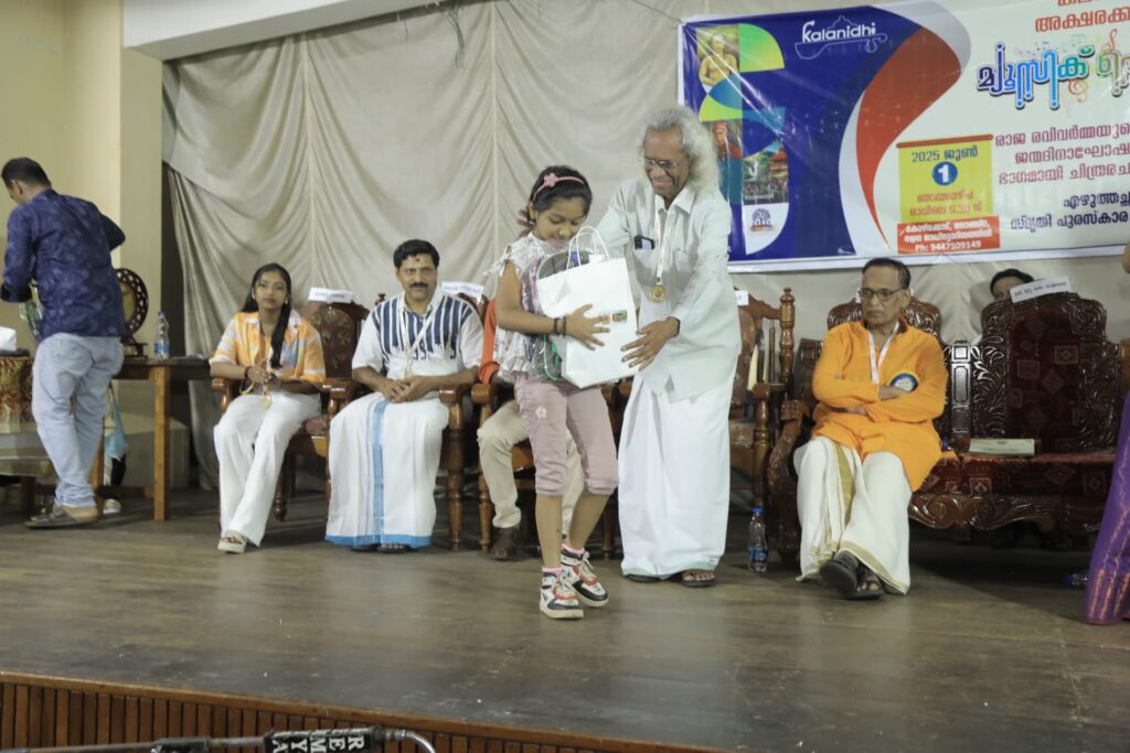 കവയത്രിയും, അധ്യാപികയുമായ ഡോ.ആര്യ ഗോപിക് എഴുത്തച്ഛന് സ്മൃതി അക്ഷര ജ്യോതി പുരസ്കാരവും പ്രദീപ് തൃപ്പരപ്പിന് വേനലില് ഒരു പൂക്കാലം എന്ന നോവലിന് പ്രഥമ എഴുത്തച്ഛന് സ്മാരക പുരസ്കാരവും സമ്മാനിച്ചു. നവാഗത ബാലതാരമായ ജാന്വി വത്സരാജിന് കലാനിധി പ്രഥമ രാജാരവിവര്മ്മ സംഗീത കലാ ശ്രേഷ്ഠ പുരസ്കാരം നല്കി അനുമോദിച്ചു.