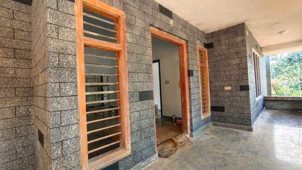 വീട് നിര്മാണത്തിലെ ചെലവേറിയ ഒരു വിഭാഗമാണ് പ്ലാസ്റ്ററിങ്. എന്നാല് ഭിത്തികളില് സിമന്റ് ക്ലാഡിങ് വര്ക്കുകള് ചെയ്യുമ്പോള് പ്ലാസ്റ്ററിങ് ചെയ്യേണ്ട അവശ്യമില്ല എന്നത് എടുത്തുപറയേണ്ട കാര്യമാണ്. അതുവഴി വീട് നിര്മാണത്തിന്റെ ചെവല് വളരെയധികം ചുരുക്കാനും സാധിക്കും. കാഴ്ചയില് സ്റ്റോണ് വര്ക്കല്ലെന്ന് ആരും പറയുകയുമില്ല. അത്ര ഫിനിഷിങോടെയാണ് ഓരോ വര്ക്കും റിജേഷ് പൂര്ത്തിയാക്കുന്നത്.