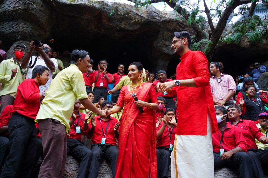 തുടര്ന്ന് സെന്ററിലെ റുക്സാനയും പാര്വതിയും കൂട്ടരും താമരക്കുരുവിക്ക് തട്ടമിട് എന്ന ഗാനം ആലപിച്ചു. അതോടെ കുട്ടികള് ഒന്നടങ്കം പാട്ടിനൊപ്പം നൃത്തം ചെയ്തു. മഞ്ജരിയും ജെറിനും കുട്ടികള്ക്കിടയിലേയ്ക്കിറങ്ങിയതോടെ വിവാഹാഘോഷം അതിന്റെ പൂര്ണതയിലെത്തുകയായിരുന്നു. ഒടുവില് മഞ്ജരിയും കുട്ടികള്ക്കായി പാടുകയും ചെയ്തു.