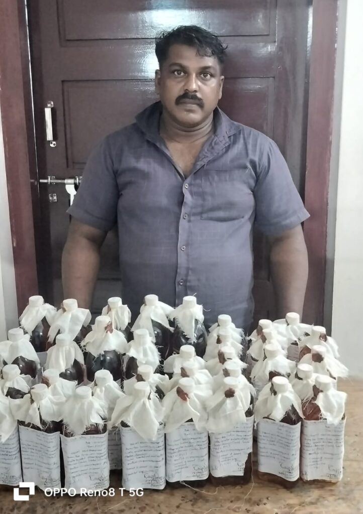 കോതമംഗലം : കോതമംഗലം എക്സൈസ് സർക്കിൾ ഇൻസ്പെക്ടറും സംഘവും ചേർന്ന് കോതമംഗലം ടൌൺ ഭാഗത്ത്, മദ്യ വിൽപ്പന നടത്തിയ ഒരാളെ അറസ്റ്റ് ചെയ്തു.കോതമംഗലം കരിങ്ങഴ കരയിൽ മോളത്തുകൂടി വീട്ടിൽ ഗോപാലകൃഷ്ണന്റെ മകൻ അനീഷ് (40) ആണ് അറസ്റ്റ്ലായത്. ഡ്രൈഡേ ദിനത്തോടും, കോതമംഗലം ചെറിയ പള്ളി കന്നി-20 പെരുന്നാളിനോടനു ബന്ധിച്ചും എക്സൈസ് പാർട്ടി കോതമംഗലം ടൗണിന്റെ വിവിധ ഭാഗങ്ങളിൽ രഹസ്യന്വേഷണവും പട്രോളിംഗും നടത്തുന്നതിനിടയിലാണ് മദ്യ വിൽപ്പന നടത്തുകയായിരുന്ന അനീഷ് പിടികൂടിയത്.