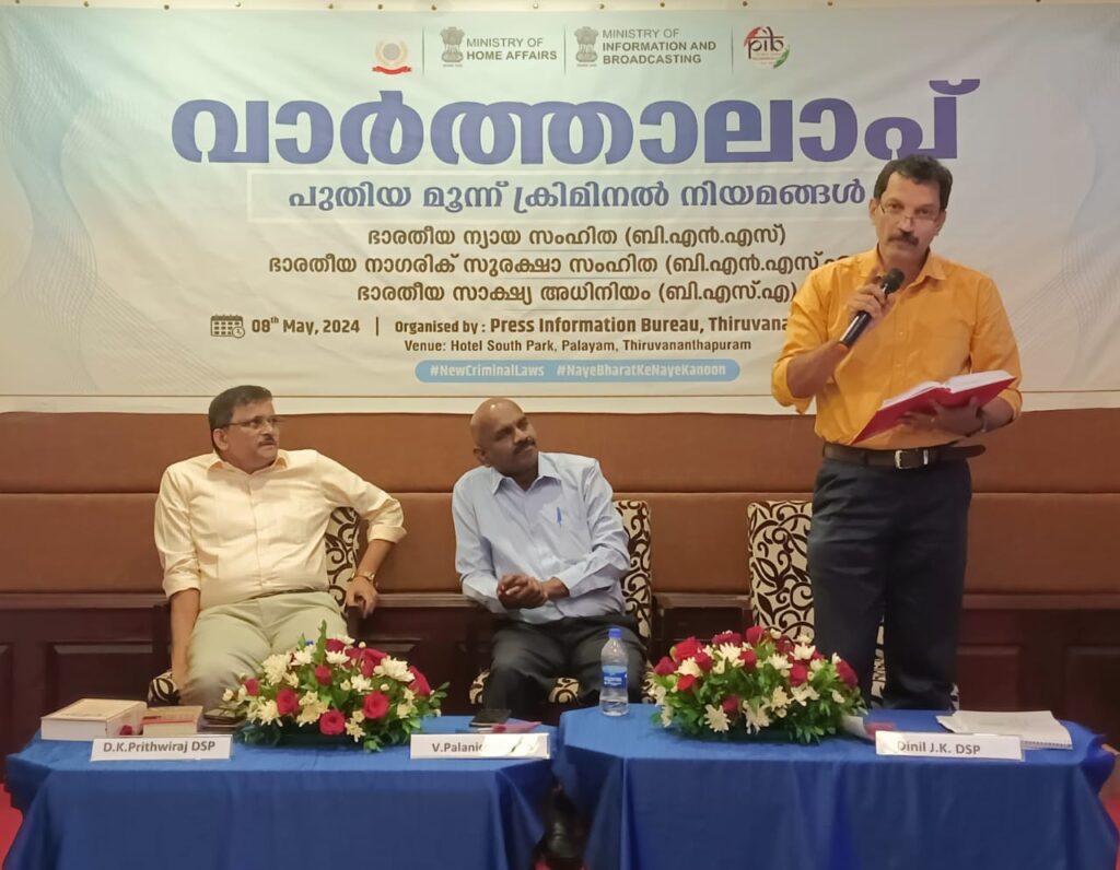 സമകാലിക വെല്ലുവിളികളെ സമഗ്രമായി അഭിസംബോധന ചെയ്ത് ഇന്ത്യൻ നീതിന്യായ വ്യവസ്ഥയെ ശക്തിപ്പെടുത്തുന്നതിനാണ് ഭാരതീയ നാഗരിക് സുരക്ഷാ സംഹിത -2023, ഭാരതീയ ന്യായ സംഹിത -2023, ഭാരതീയ സാക്ഷ്യ അധിനിയം -2023 എന്നീ മൂന്ന് പുതിയ ക്രിമിനൽ നിയമങ്ങൾ പാർലമെന്റ് പാസ്സാക്കിയത്. ചടങ്ങില് പി ഐ ബി ഡെപ്യൂട്ടി ഡയറക്ടര് നവീന് ശ്രീജിത്ത് സ്വാഗതവും പി ഐ ബി ഇന്ഫര്മേഷന് അസിസ്റ്റന്റ് നിഖിത എ എസ് കൃതജ്ഞതയും പറഞ്ഞു.