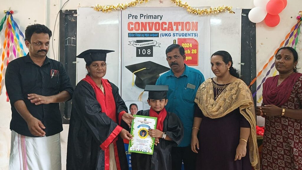 കറുത്തുനീണ്ട ഗൗണും തൊപ്പിയുമണിഞ്ഞ് കുഞ്ഞേച്ചിമാർക്കും ചേട്ടൻമാർക്കും മുന്നിൽ ഗമയിലായിരുന്നു കുഞ്ഞു ബിരുദധാരികൾ. പേര് വിളിക്കുമ്പോൾ വേദിയിലെത്തി സ്വർണമെഡലും സർട്ടിഫിക്കറ്റും കൈപ്പറ്റുമ്പോൾ ചിലർ വീട്ടുകാരെ നോക്കി ചിരിച്ചു. സർട്ടിഫിക്കറ്റും മെഡലും ഉയർത്തി കാട്ടി.